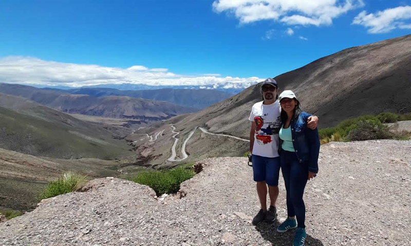 Cada una de las «postas» son una postal, para donde dirijas la mirada un nuevo pigmento, el juego del sol y las nubes tiñe los rincones. Aunque quieras no hay forma de que los sentidos absorvan algo tan particular como La Cuesta del Lipán, volvés la vista y ahí está el camino zigzagueante, vértigo y emoción!!! El cuerpo te hace saber que estás a 2500 m. pero solo estamos a mitad de camino. Al bajar del vehículo los movimientos los hacemos más lentos porque los oídos se nos tapan y destapan, masticar no alcanza, los sonidos son lejanos, cuasi sordera temporal.